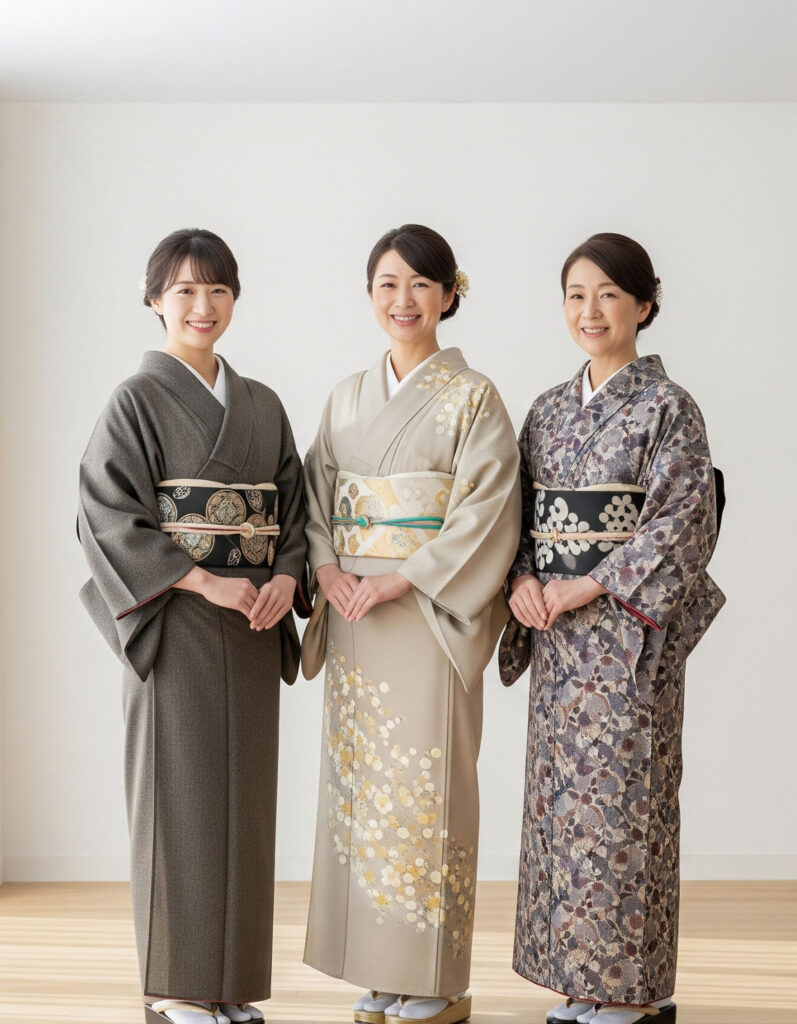 初等科は、初心者の方に着物の魅力を知って頂く為の第一歩として、どなたでも気軽に体験できるように開催しております。普段着の着付けから正装用の帯結びまで、やさしく分かりやすい指導で、約4ヶ月10回の受講後には着物の初歩的な知識も身に付きます。
