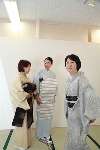 普段着の着付けから正装用の帯結びまで、やさしく分かりやすい指導で、約4ヶ月10回の受講後には着物の初歩的な知識も身に付きます。