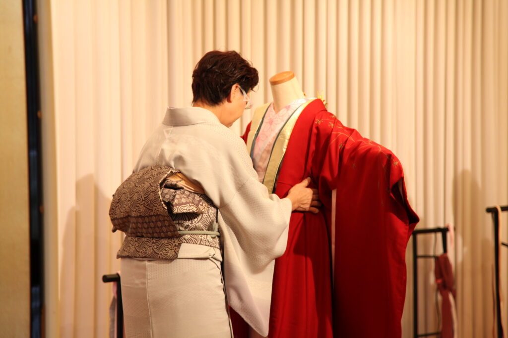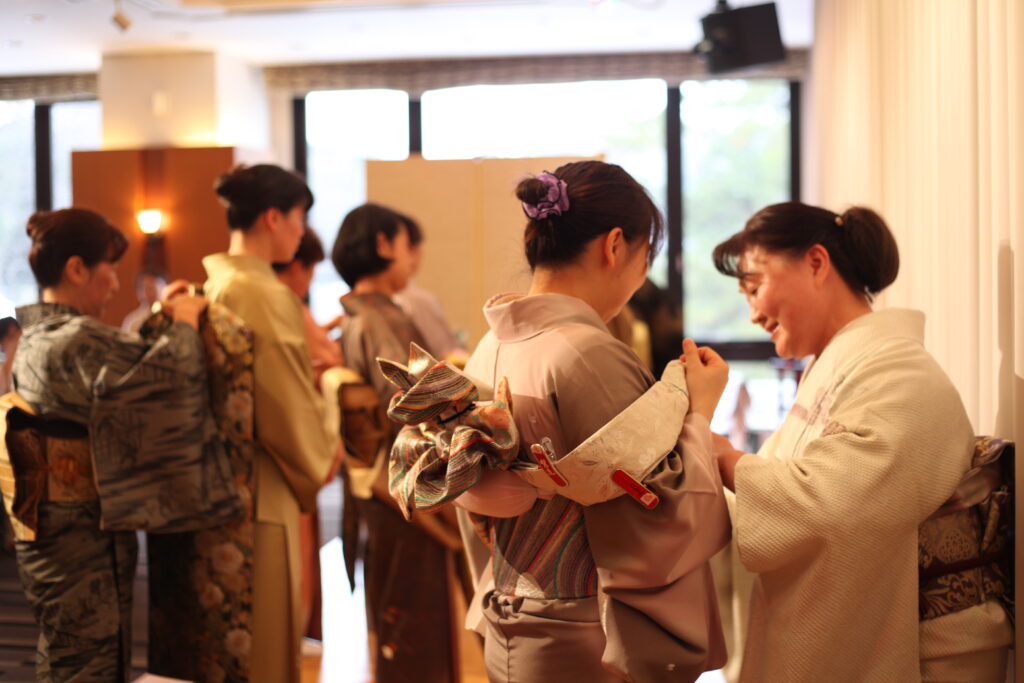 初等科は、初心者の方に着物の魅力を知って頂く為の第一歩として、どなたでも気軽に体験できるように開催しております。