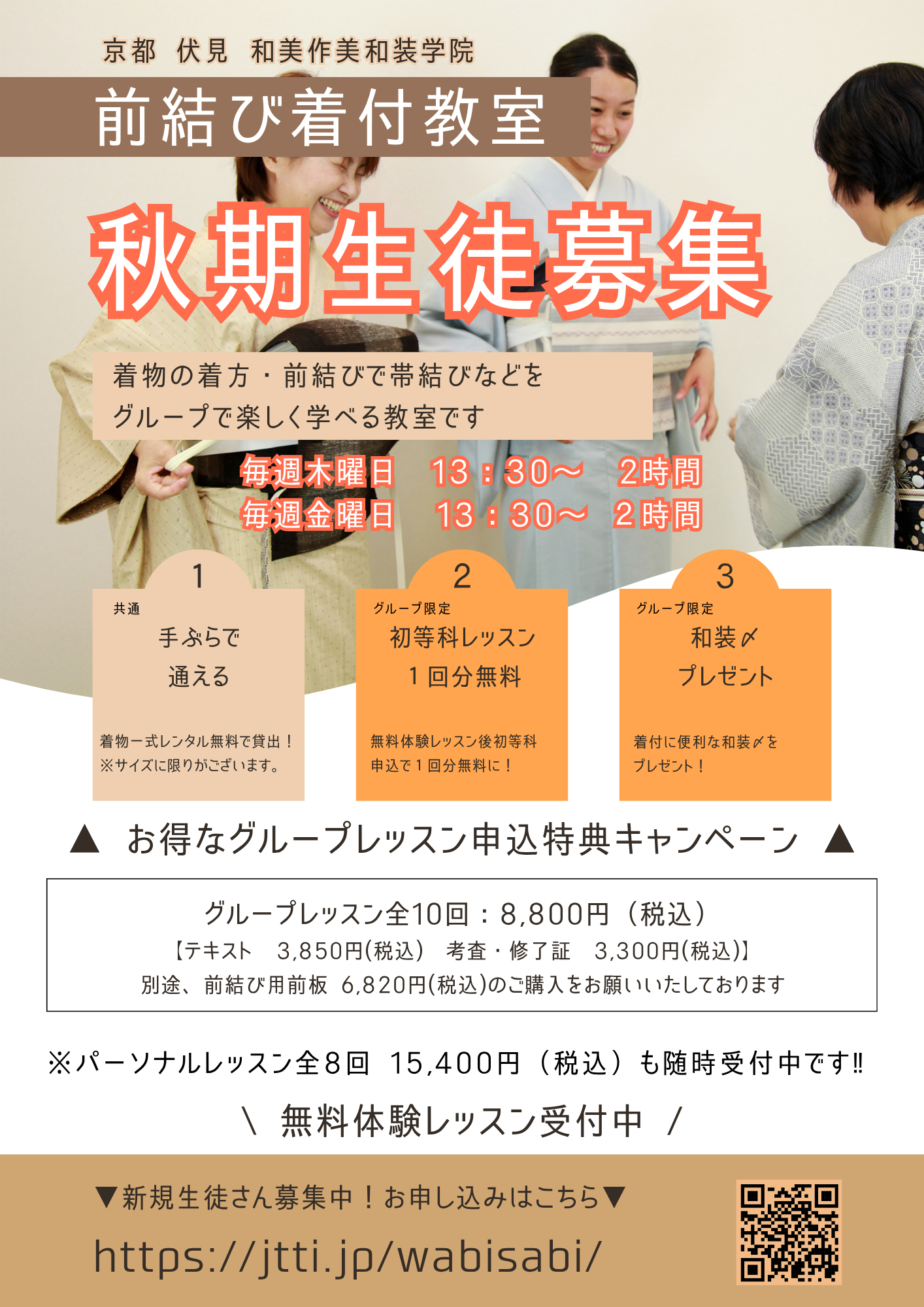 京都伏見 和美作美和装学院が贈る、前結び着付け教室